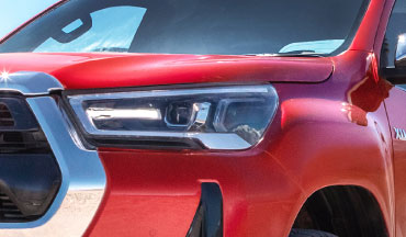 Los modelos de la Hilux tienen un diseño robusto y atlético, diseñados para realzar su presencia en la carretera. Además, los faros LED (solo para 2.7L A/T y SRX 4.0L A/T,) y las líneas aerodinámicas le dan un aspecto moderno y dinámico.